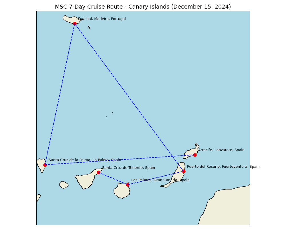 Our MSC Cruise offered a 7-night itinerary in the Canary Islands and Madeira just before Christmas of 2024. The itinerary included departures from Santa Cruz de Tenerife and featured the following ports of call: